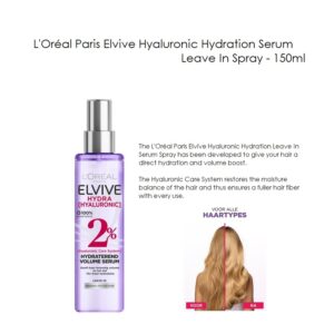 法國製 歐萊雅 水潤玻尿酸免沖洗 護髮噴霧 精華 Loreal Paris Elvive Hydra Hyaluronic Hydration Leave-in Spray – 150ml
